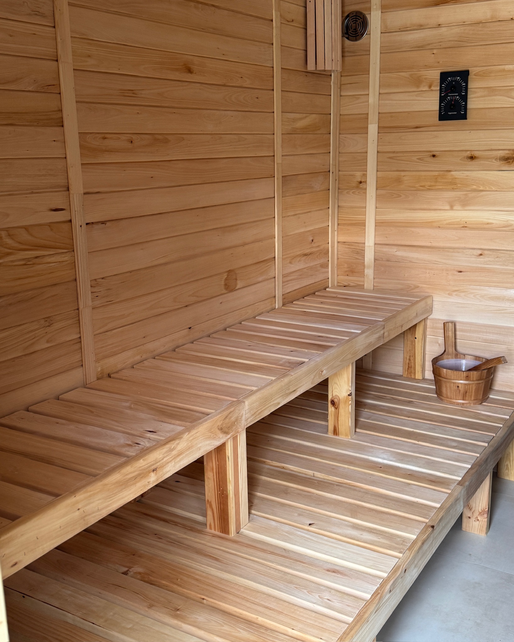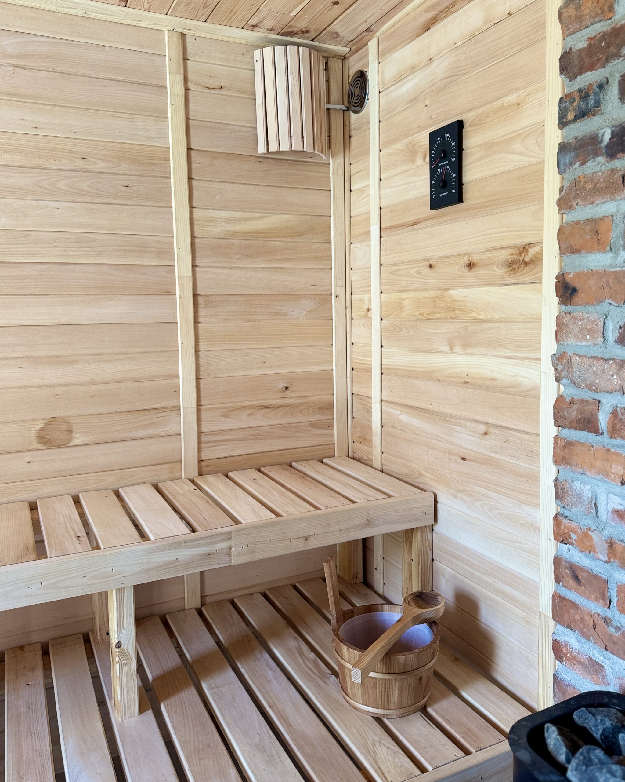 To prywatna, kojąca przestrzeń uruchamiana na życzenie. Tak sobie wybrażamy ciepły finał dnia po pracy z grupą lub po rodzinnym spacerze po pięknych okolicach Beskidu Wyspowego. Obok sauny znajduje się dodatkowa łazienka, która oczywiście jest dostępna dla osób korzystających z sauny.