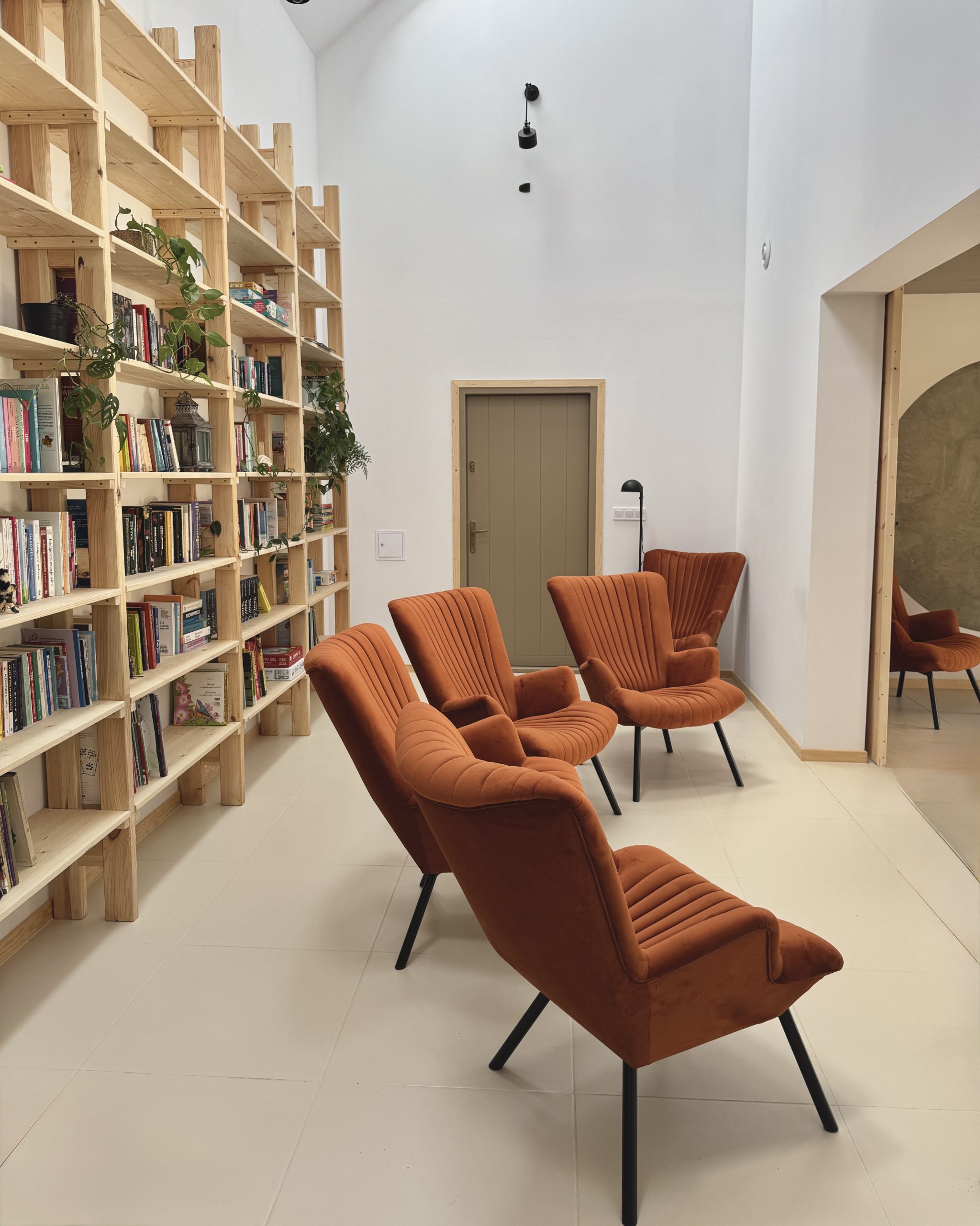 Ciche miejsce z książkami na spokojną lekturę, notatki po zajęciach czy ważne rozmowy.
